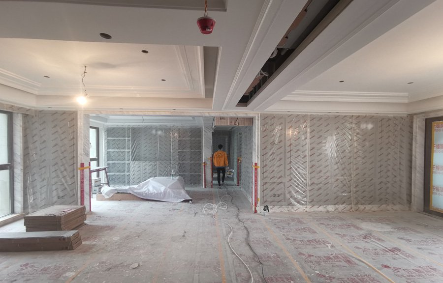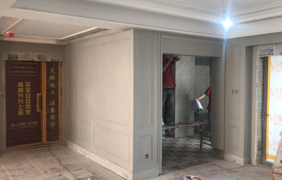 水電改造前,設計師和項目主管約上業(yè)主、項目監(jiān)理、電工組長到現(xiàn)場按業(yè)主的使用要求及功能性定位,并做好標記彈線放樣。