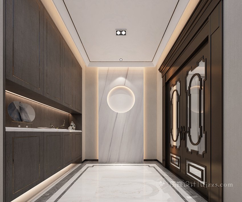 該案例位于龍崗市中心的華策中心城,小區(qū)分布以多層復(fù)式為主,本案為二樓的一套復(fù)式。屋主為潮汕地區(qū)業(yè)主,對(duì)中式比較情有獨(dú)鐘,但是又怕中式的儀式感太強(qiáng),色彩過(guò)于沉重。了解到客戶的這一需求后,設(shè)計(jì)師將現(xiàn)代風(fēng)格的手法和中式的元素相結(jié)合,配色方面以淺色系為主,搭配中式元素做點(diǎn)綴,現(xiàn)代中透露出淡淡的中式味道,作為裝飾用的頂部不銹鋼線條,更是增加了整個(gè)案子空間的線條感,讓整個(gè)空間更加生動(dòng)活躍。