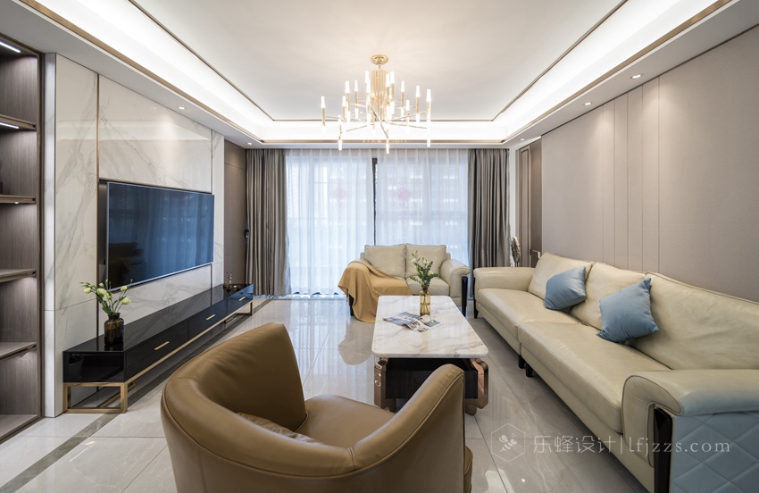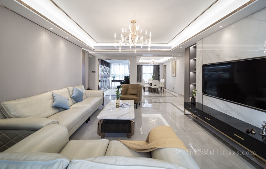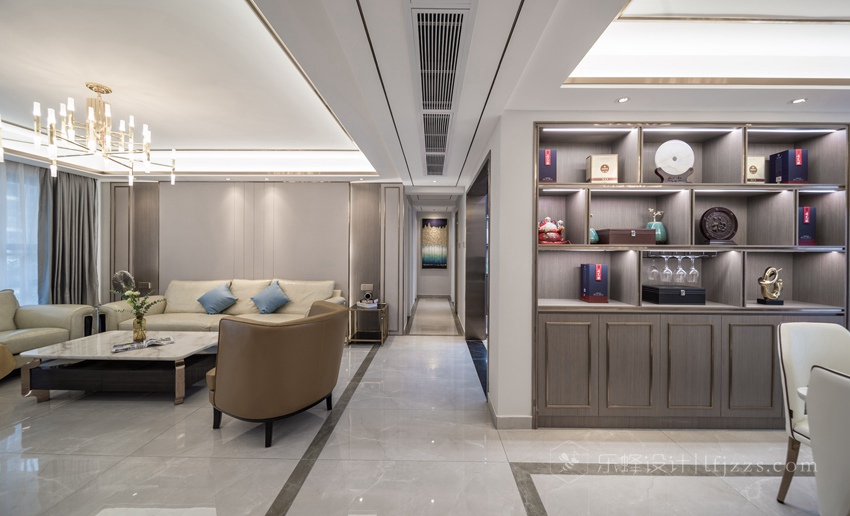 在視覺(jué)上舍棄張揚(yáng),通過(guò)對(duì)線條與色塊的巧妙應(yīng)用,營(yíng)造出輕松的空間氛圍,傳遞“輕奢華、新時(shí)尚”的生活理念。