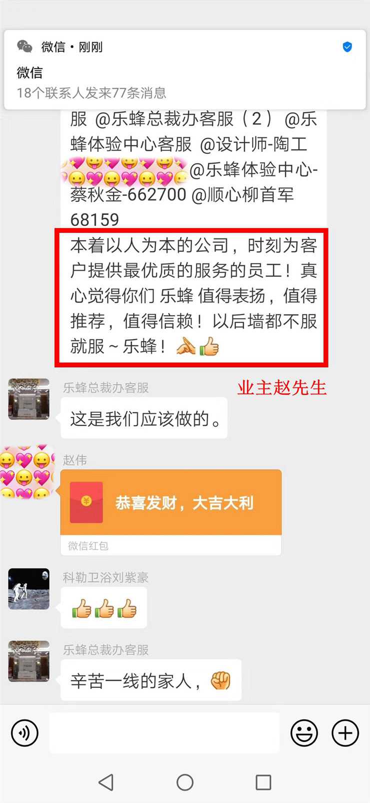 感謝兄弟們用敬業(yè),成就樂(lè)蜂的好口碑!辛苦了!