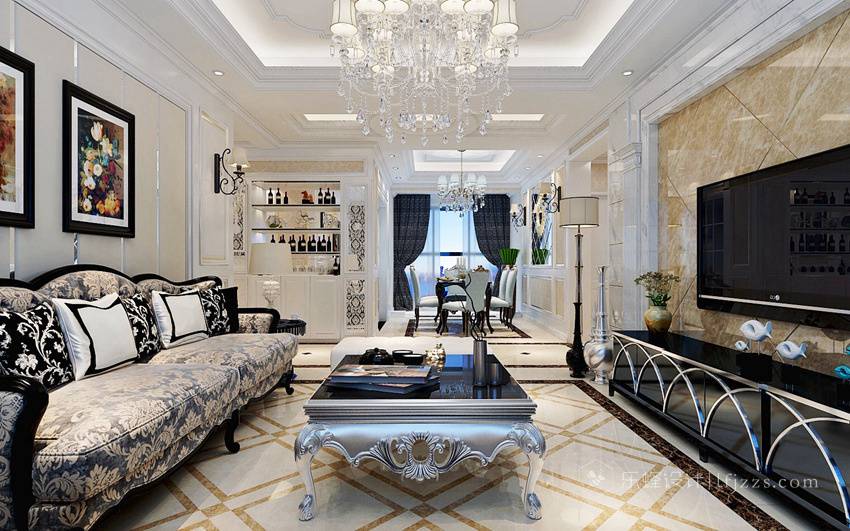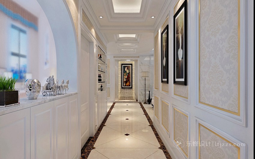 從入戶的玄關(guān)柜到過(guò)道,猶如皚皚白雪中的一座城堡。簡(jiǎn)單的白色中穿插著黑鏡與暖色墻布,讓空間清新又不失溫暖情。白色的主體嵌入暖色的石材,冰冷的外表有著溫暖的內(nèi)在,再配上家私那黑白分明的線條輪廓。