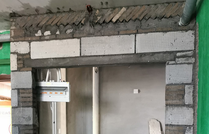 A:墻體拆除已完成 ,等待新建墻體;B:所有新砌墻表面掛鋼網(wǎng);門(mén)頭和窗頭頂過(guò)梁用鋼筋混泥土澆制,使均勻受力防止門(mén)框下塌開(kāi)裂;C:新砌墻與頂部天花交接處用10公分小磚斜砌,更好的擠緊與梁、板底的空隙,防止因不均勻沉降以致墻體出現(xiàn)開(kāi)裂。