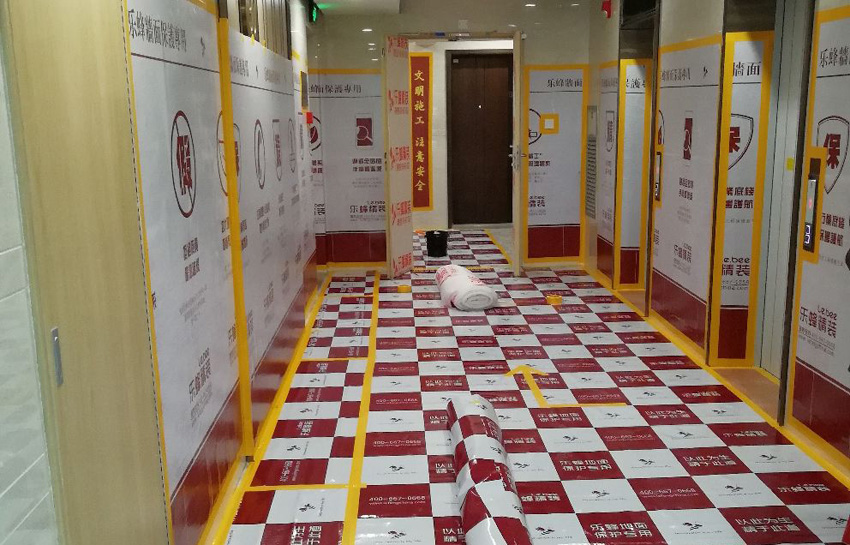 工地開工前,會對電梯、過道兩側、墻面地面及門窗等用專用材料進行保護,陰陽角處安裝防撞條,防止在施工中材料進出場對現(xiàn)場造成破壞,導致不必要的損失。