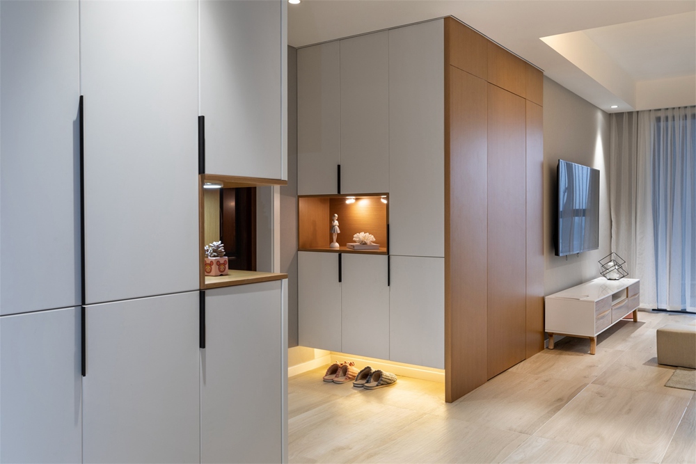 北歐風(fēng)格以淺色為代表,整體感舒適自然,同現(xiàn)代風(fēng)格有著極大的相似,頗受現(xiàn)代年輕人的喜愛(ài)。北歐風(fēng)格的裝修沒(méi)有過(guò)多冗雜的裝飾和花紋,用一種最簡(jiǎn)單、直接、功能化且貼近自然的線條來(lái)表現(xiàn)其寧?kù)o的北歐風(fēng)情。本案以淺灰色為基調(diào),搭配白色、原木色等輔助色,以少量純色作為點(diǎn)綴,整體傾向于淺色系,給人一種干凈明朗的感覺(jué)。