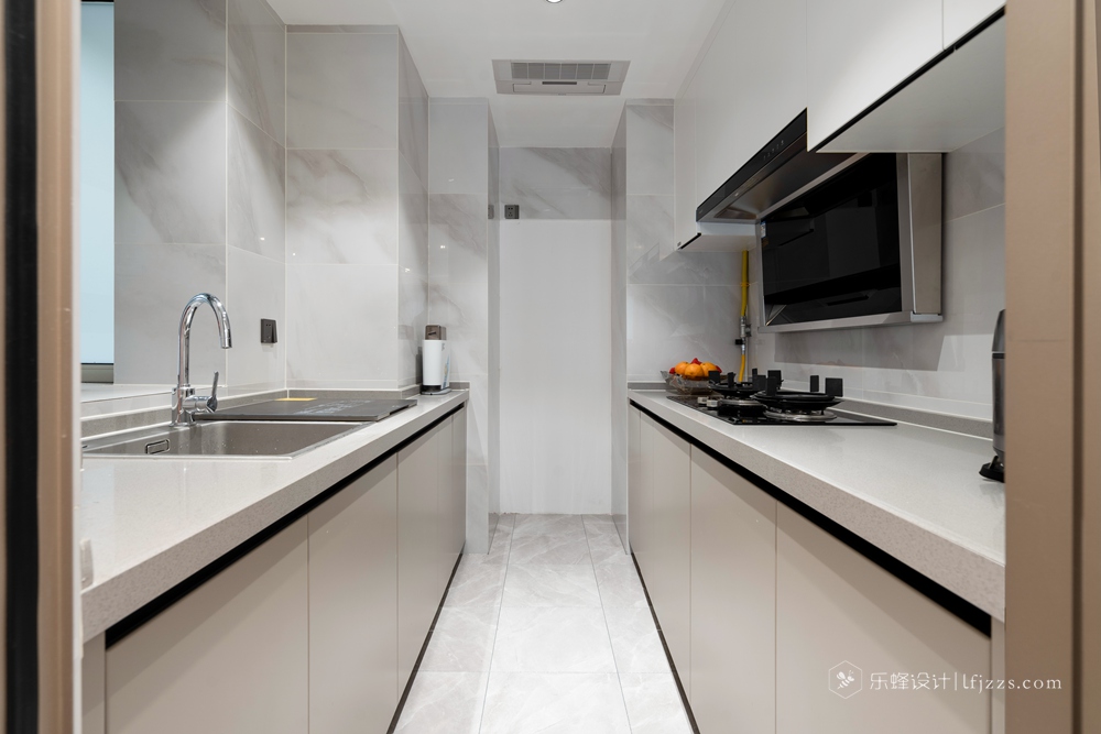 色彩簡約,空間以白色為主基調,摒棄傳統(tǒng)的吊燈,使用點光源的筒燈,使燈光更有層次感,整個空間的燈光也更柔和。打造別致溫馨的居住氛圍,帶著十分簡約科技圖案的墻紙與時尚飾品使簡約讓空間布局多了些許立體感。