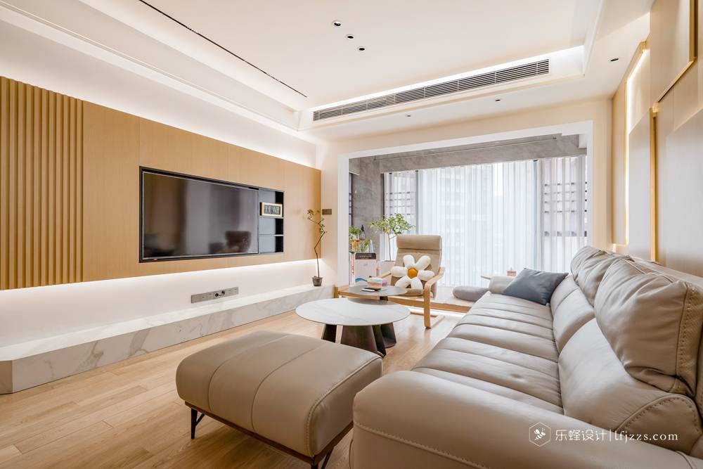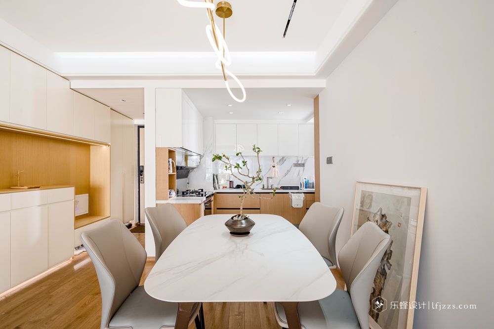 本案是一套龍光 · 玖龍璽120平四居室房子,采用日式原木風格,客廳、餐廳、廚房一體化,使整個空間更加寬敞明亮。