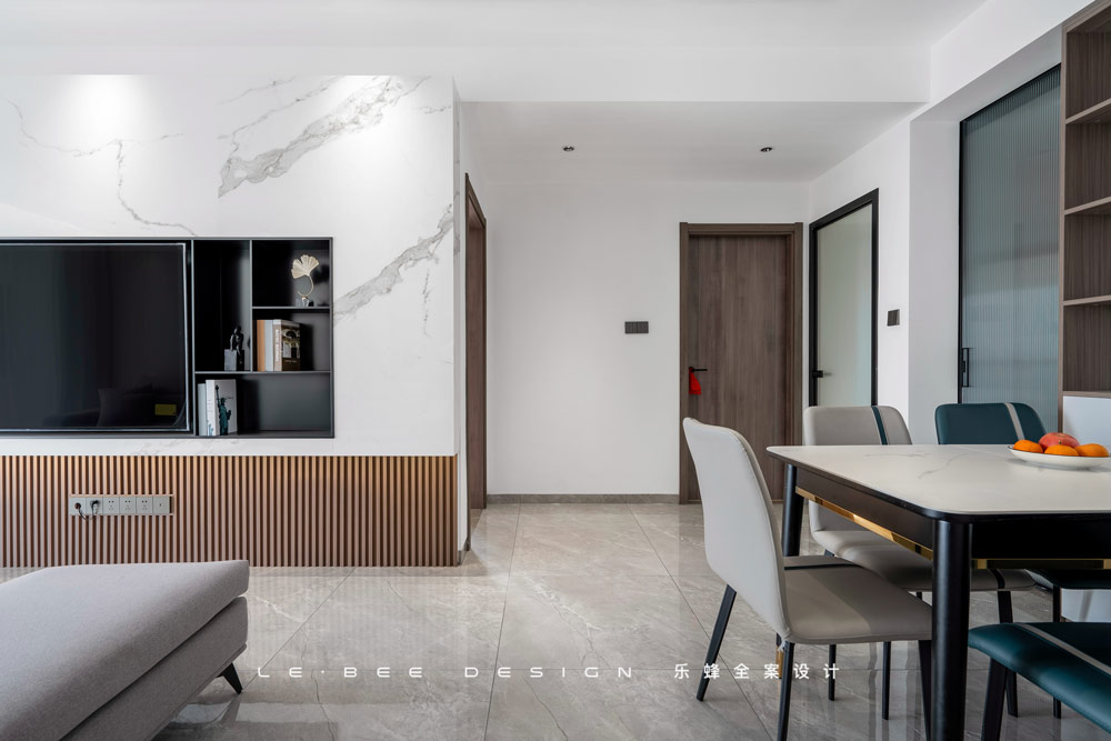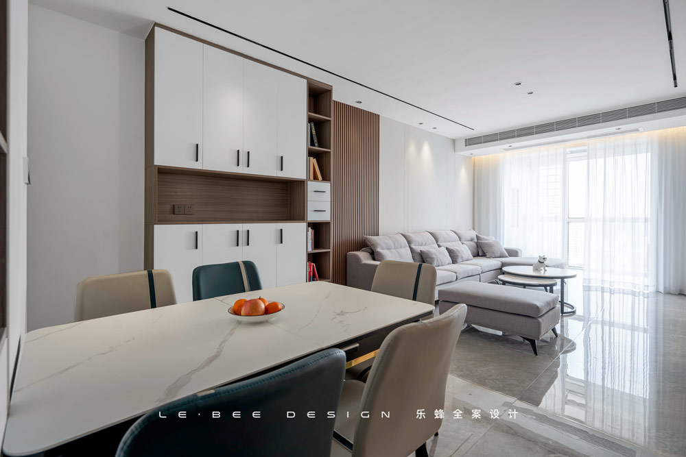 言說設計,終要回歸到空間本身,觸摸多個維度,方能尋到居所棲息的真諦。正如這套保利悅都的設計一樣,我們將空間盡可能的都利用起來,特別是公共區(qū)域的空間進行整合,讓屋主在視覺上得到延展,設計一個空間,使其生動近人,調動每一個感官與神經(jīng)來與之互動,在辯證回環(huán)之中,實現(xiàn)人與空間的契合相生,正是我們的設計初衷。
