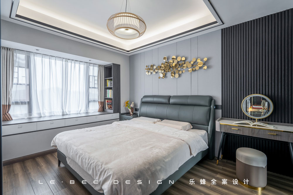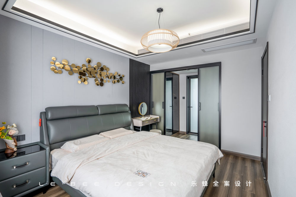 主臥相比起公共空間,多了點(diǎn)現(xiàn)代風(fēng)格,為空間增添年輕氣息。