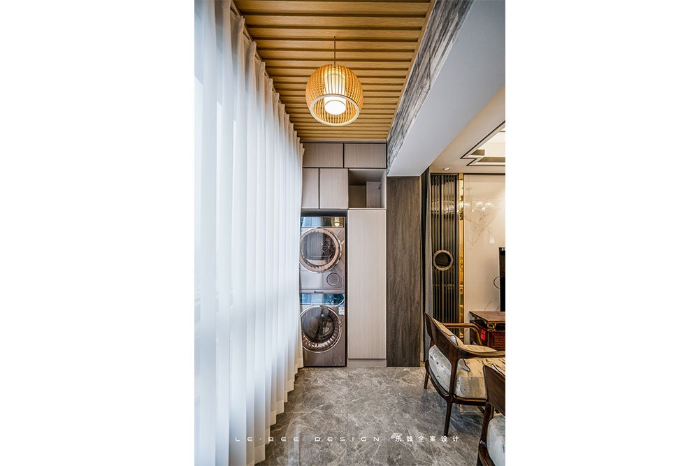 陽(yáng)臺(tái)柜嵌入洗衣機(jī)烘干機(jī),一瞬間又回到現(xiàn)代生活。