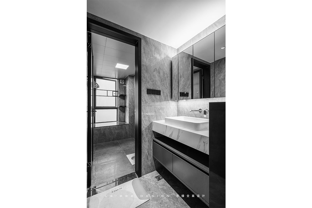 洗手盆外置的設(shè)計(jì)更適合多人使用,鏡面柜把儲(chǔ)物格局拉滿,鏡前燈點(diǎn)亮氛圍,入墻式水龍頭將簡(jiǎn)約理念進(jìn)行到底。