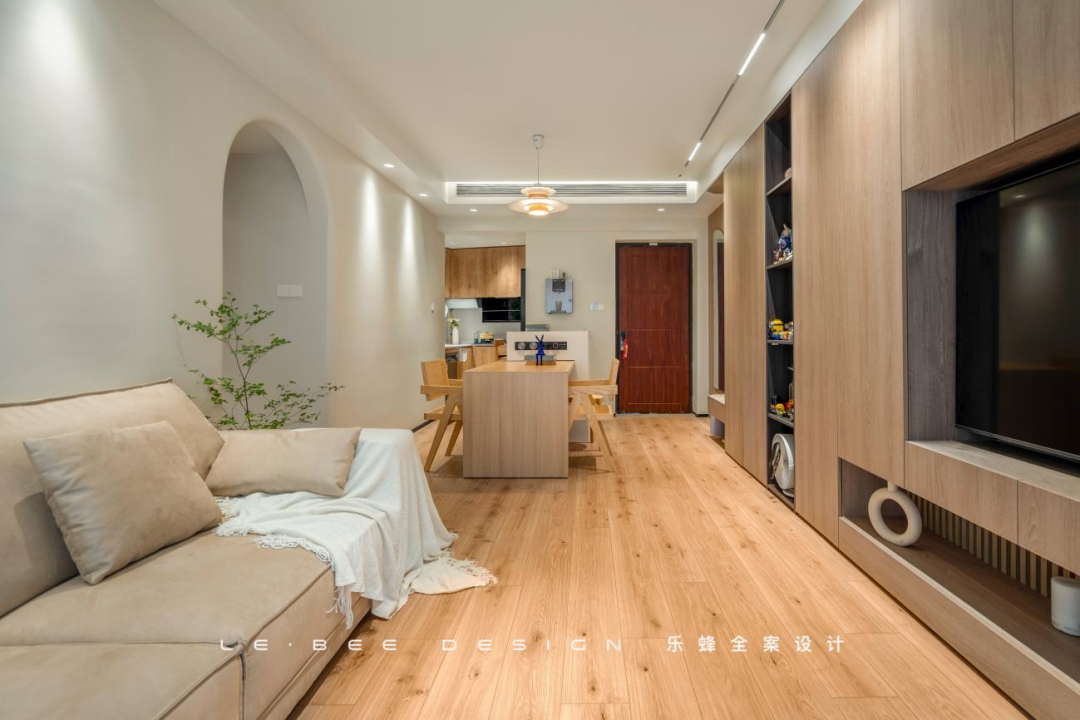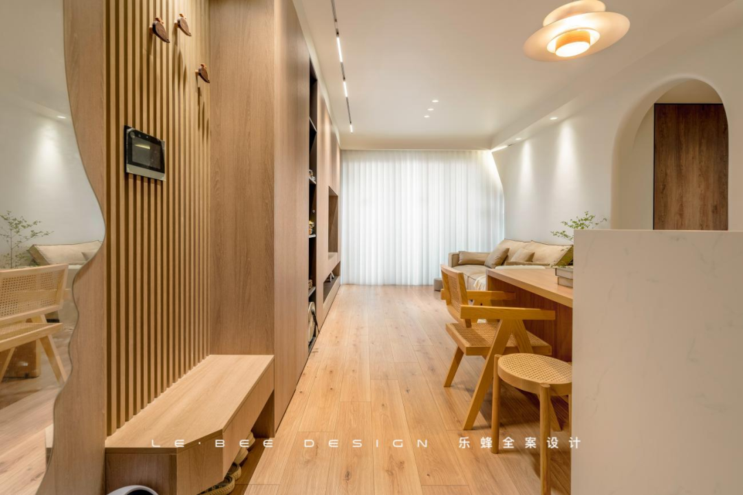 本次女業(yè)主為一個(gè)90后大廠碼農(nóng),目前是獨(dú)居,對于三室兩廳的家來說,當(dāng)然希望物盡其用,盡可能擴(kuò)充家的功能。業(yè)主喜歡有個(gè)性的侘寂風(fēng),負(fù)責(zé)本次項(xiàng)目的設(shè)計(jì)師以往有類似的案例正好符合業(yè)主的喜好,對于我們初步的設(shè)計(jì)也感到滿意,于是就這樣達(dá)成了合作。全案設(shè)計(jì)的優(yōu)勢可以使工作繁忙的業(yè)主能夠在裝修的過程中也全心投入工作。雖然在整個(gè)過程中有許多溝通和修改,但總體落地效果十分還原,滿足了業(yè)主想擁有侘寂風(fēng),但不想利用微水泥材質(zhì)的需求。在整體的設(shè)計(jì)上也實(shí)現(xiàn)了書房和衣帽間的結(jié)合,并根據(jù)業(yè)主的生活方式設(shè)計(jì)了吧臺(tái)和島臺(tái)供業(yè)主辦公和烹飪,一個(gè)人的精致小家,就這么實(shí)現(xiàn)了。