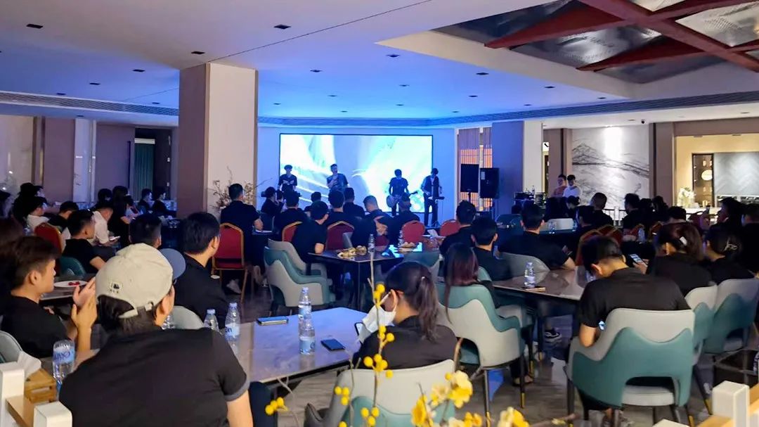 樂(lè)蜂裝飾《設(shè)計(jì)之夜》音樂(lè)表彰7月31日夜晚震撼上演,樂(lè)隊(duì)現(xiàn)場(chǎng)激情嗨唱,樂(lè)蜂全案、樂(lè)杜鵑整裝、1979大宅設(shè)計(jì)、樂(lè)蜂精工裝設(shè)計(jì)師齊聚總部4樓,享受著現(xiàn)場(chǎng)樂(lè)隊(duì)演奏的獨(dú)特設(shè)計(jì)表彰。