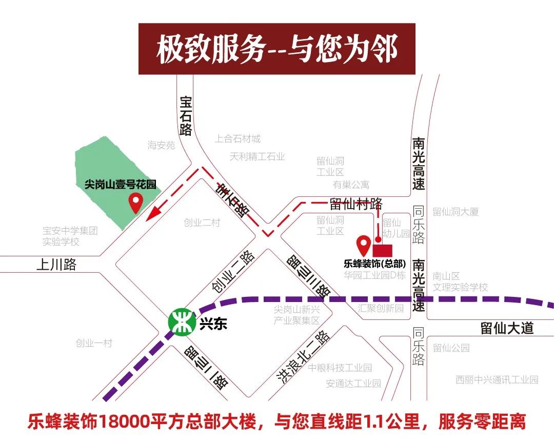 樂蜂裝飾總部位于西麗留仙洞村華園工業(yè)園D棟,與尖崗山直線距只有1.1公里,總部大樓18000平方裝修服務(wù)大樓,擁有裝飾設(shè)計(jì)院、主輔材展示、工程服務(wù)等于一體綜合辦公大樓;與您為鄰,服務(wù)方便,隨時(shí)歡迎參觀!