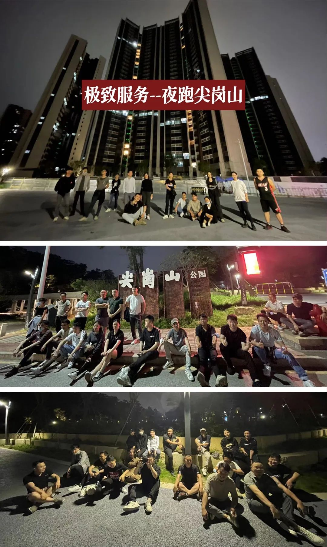 在工作之余,會(huì)經(jīng)常組織夜跑,總部——尖崗山花園往返,團(tuán)隊(duì)的小伙伴們更熟悉樓盤的周邊情況,當(dāng)然,那也是因?yàn)殡x總部比較近,通過夜跑的方式和鄰居 “串串門” !