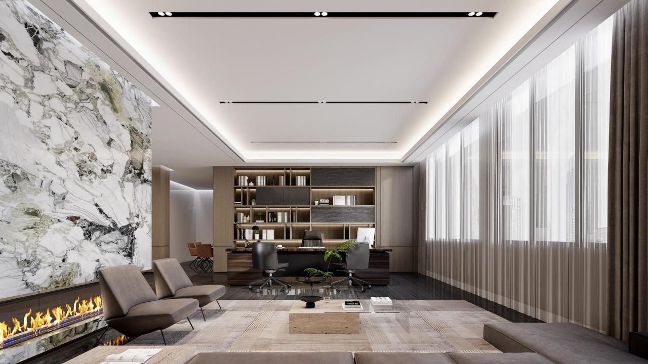 主要材料|Material: 木飾面、巖板、烤漆玻璃、烤漆板