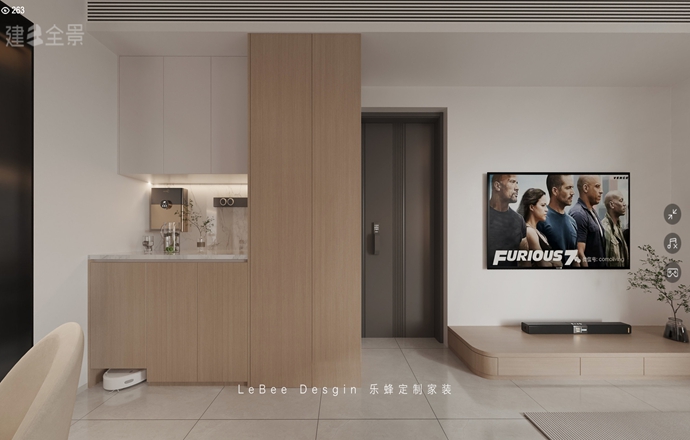 入戶玄關柜與餐邊柜一體化設計,提高空間利用率