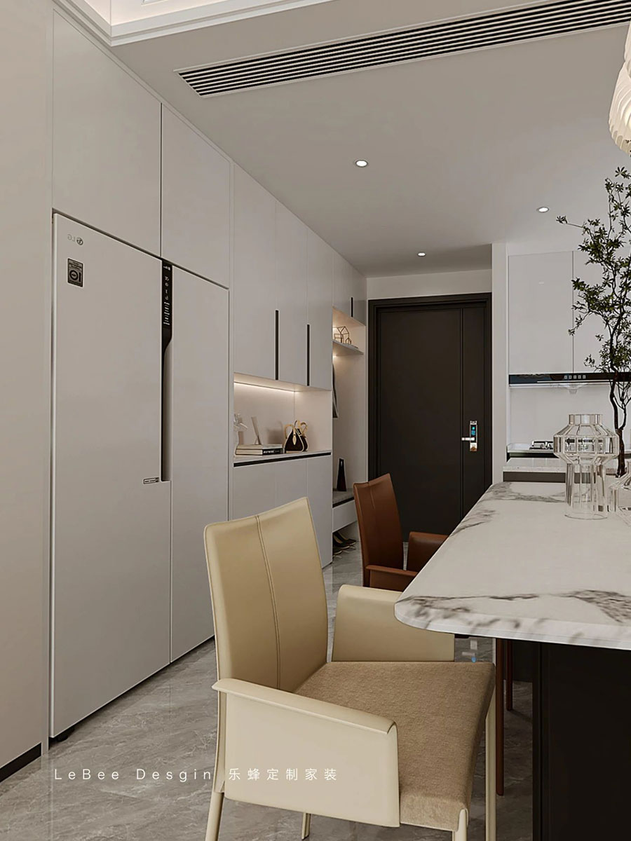 屋主是一對年輕夫婦,目前房子是屋主兩人一同居住,考慮到后面可能需要父母過來幫忙帶小孩,故保留了三個房間。設(shè)計師以女主性格和兩人追求生活的方式作為風(fēng)格的出發(fā)點,全屋是溫暖溫馨的現(xiàn)代簡約風(fēng),也是以此創(chuàng)造出最純粹,最干凈,最愜意的生活場景,以溫柔的奶咖色為主基調(diào),采用淺色的背景墻,搭配淺色系家具,配以富有質(zhì)感的軟裝飾品,通過簡約的設(shè)計美學(xué),將高品質(zhì)的生活體驗由內(nèi)而外地帶給屋主夫婦兩人。