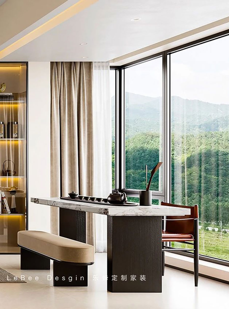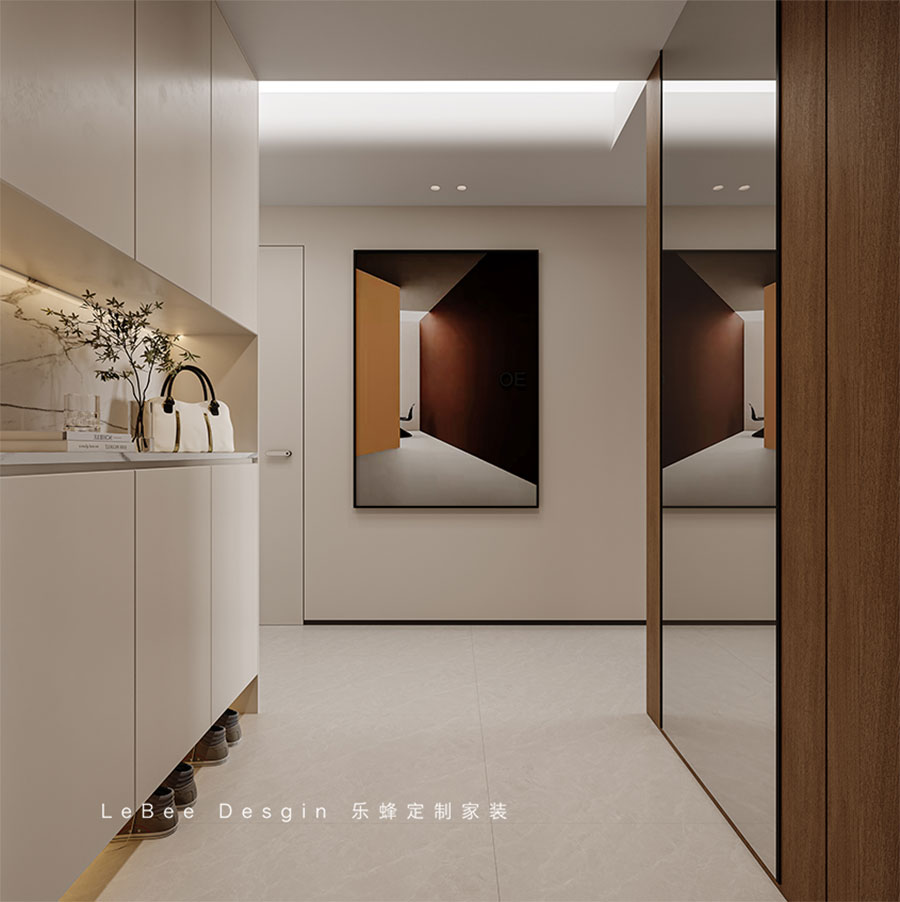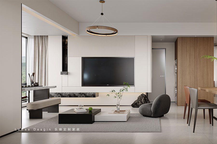 本案是一套109㎡的房屋,目前一家五口人居??;在提及房屋的設(shè)計時,業(yè)主要求廚房利用率提高,有一個自己獨立的茶室,父母會過來小住,需要預(yù)留長輩房,希望增設(shè)功能房,風(fēng)格就是越簡單越實用就行。 于是設(shè)計師對此房屋秉承業(yè)主的需求以現(xiàn)代簡約風(fēng)的設(shè)計風(fēng)格為業(yè)主打造他理想家,我們賦予了廚房更高的利用率,設(shè)立了一個獨立的茶室,同時預(yù)留了專門為長輩設(shè)計的房間,并巧妙地增設(shè)了一間多功能房,用以適應(yīng)不同場景的需求變化。 注重實用性的同時,也未忽視風(fēng)格的統(tǒng)一和審美的舒適。設(shè)計團隊細(xì)致入微地計劃每一處空間和選材,旨在打造一個簡潔而又不失精致,能夠適應(yīng)業(yè)主生活節(jié)奏,并兼具個性與舒適的現(xiàn)代家居環(huán)境。