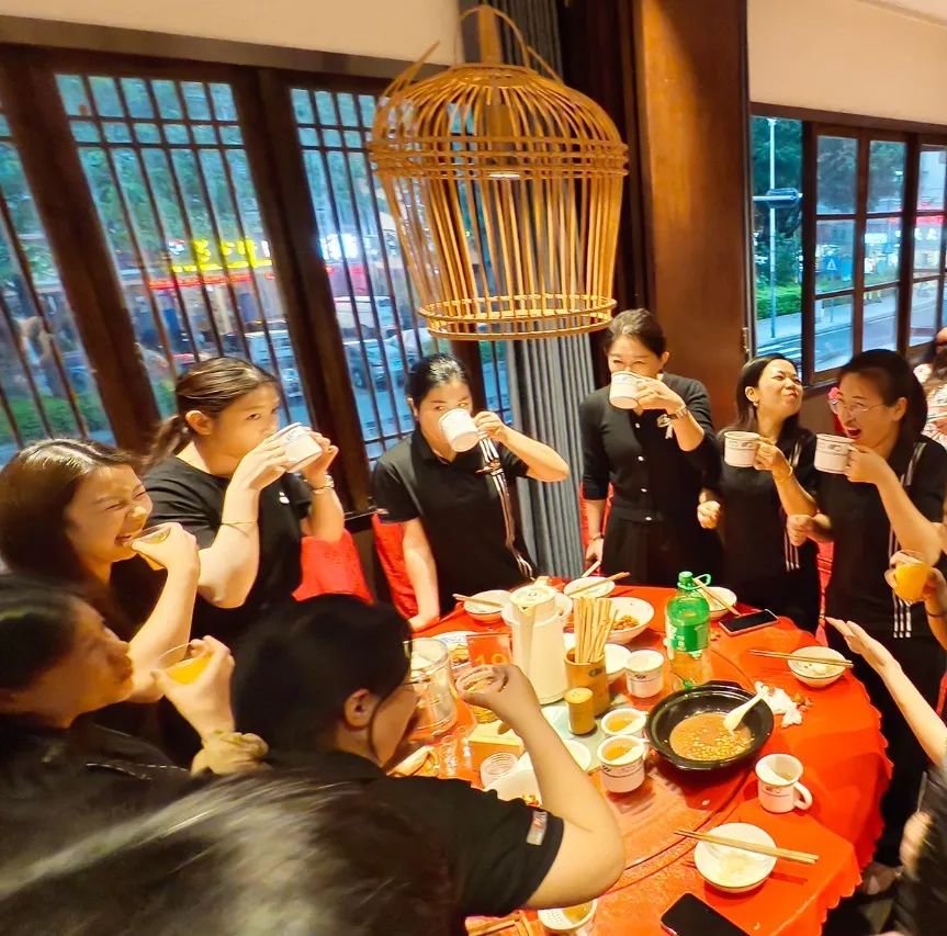 全員入座,共同享用這頓豐盛的晚餐。每一道菜都經(jīng)過(guò)精心挑選和烹制,不僅味道鮮美,更蘊(yùn)含著公司對(duì)員工的關(guān)愛(ài)與感激。大家舉杯共飲,暢談工作與生活,現(xiàn)場(chǎng)氛圍溫馨而融洽。