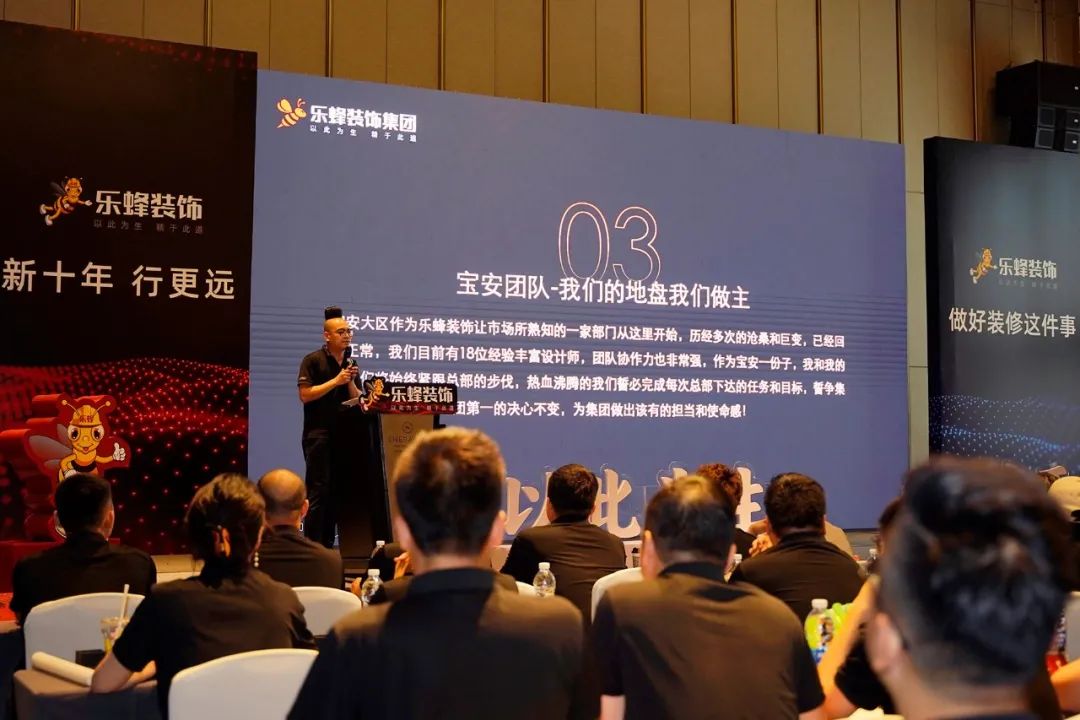 董事長(zhǎng)及各版塊負(fù)責(zé)人依次上臺(tái),就新十年的發(fā)展策略、市場(chǎng)定位、服務(wù)創(chuàng)新等方面進(jìn)行了深入的闡述,他們的話語(yǔ)中充滿了對(duì)樂(lè)蜂裝飾未來(lái)的信心與期待,同時(shí)也提出了對(duì)全體員工的期望與要求。