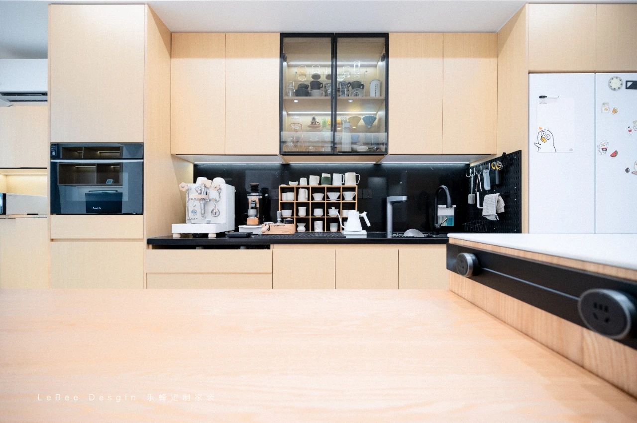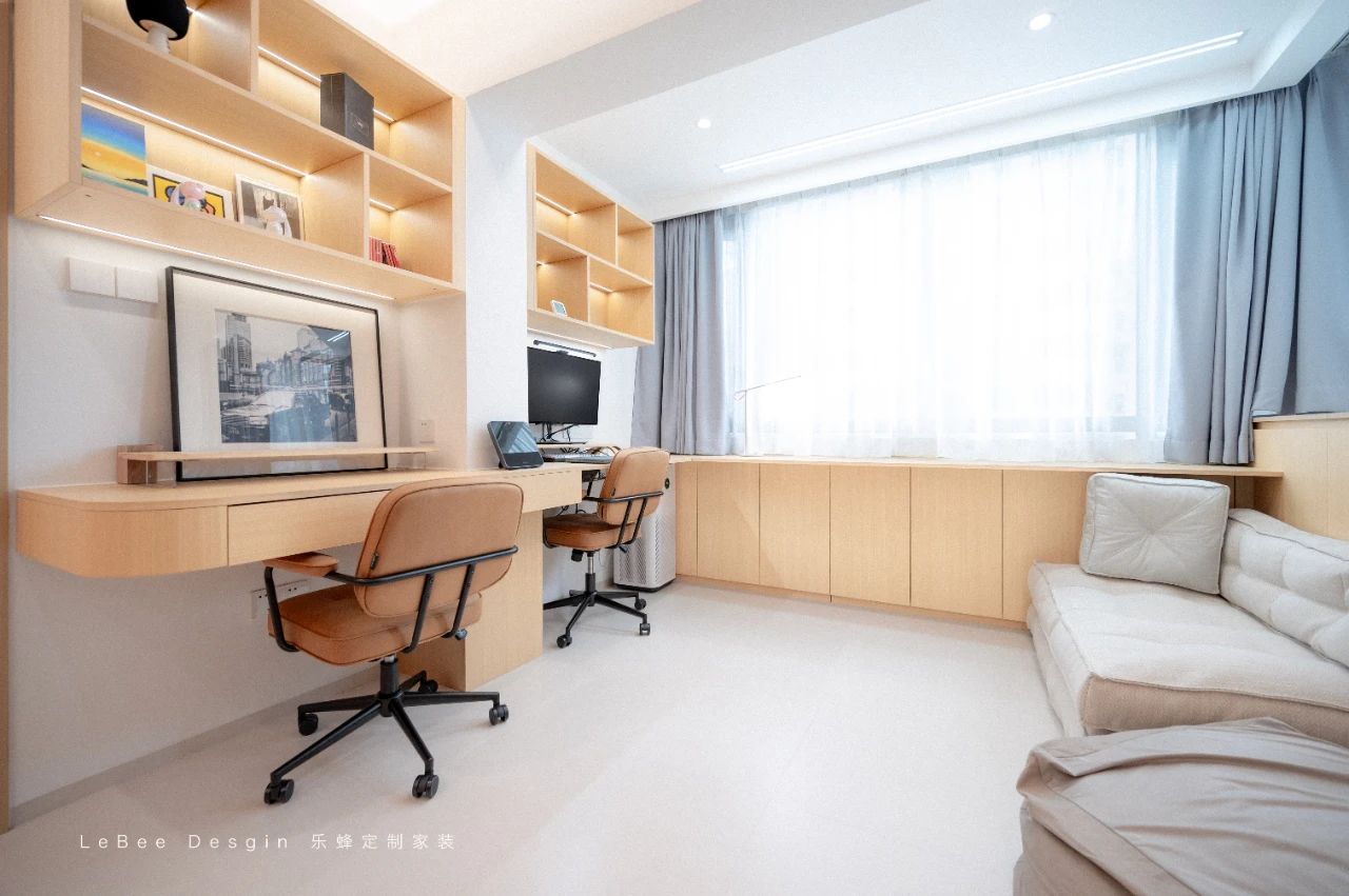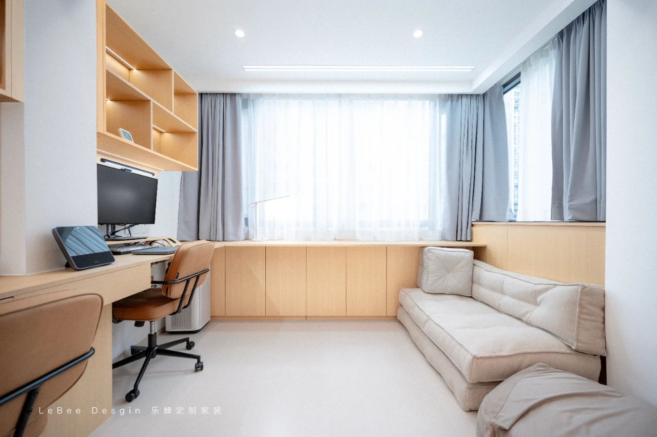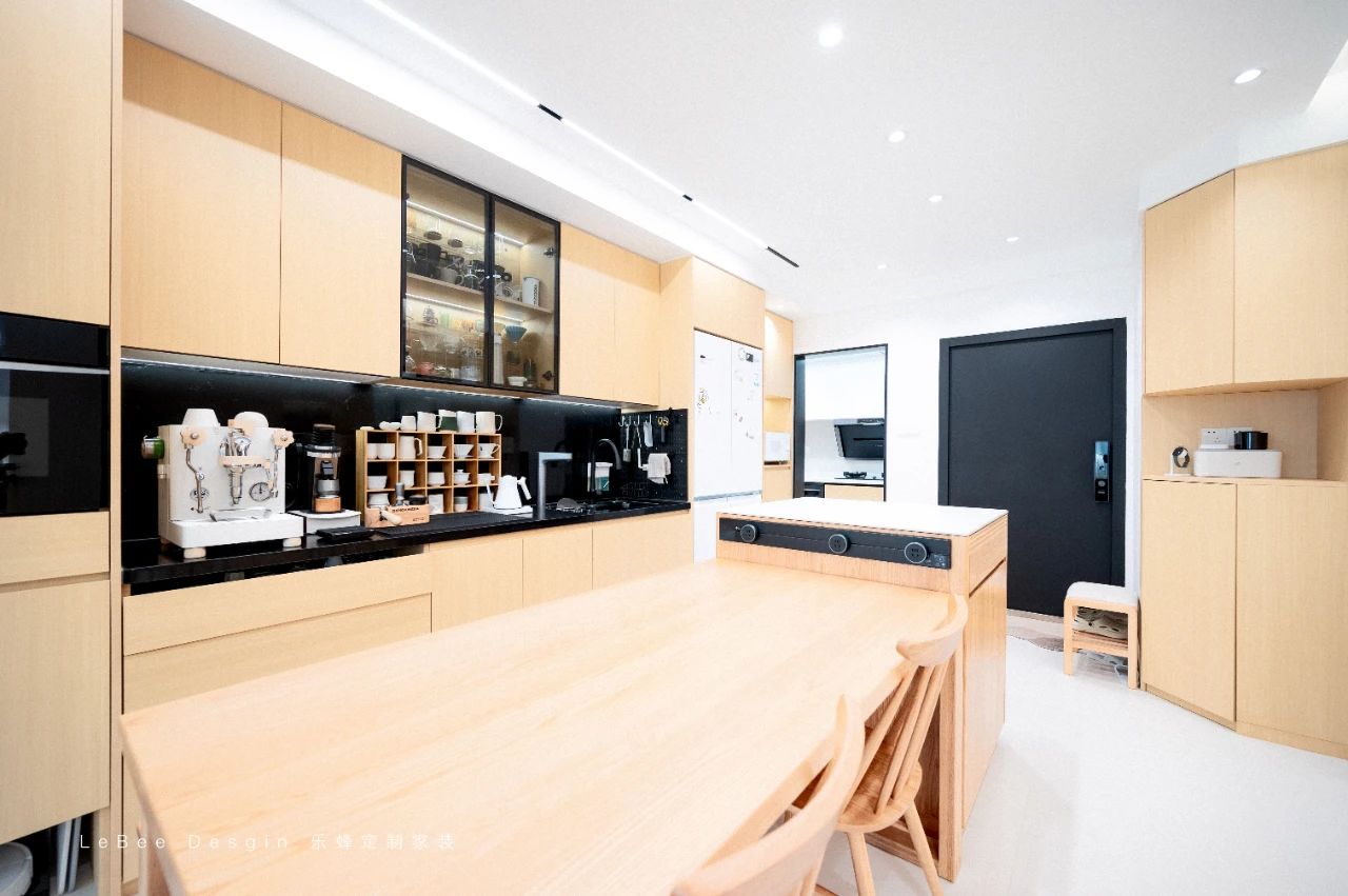 本案為兩夫妻專屬設(shè)計(jì),原木風(fēng)盡顯溫馨。整體設(shè)計(jì)重收納,原木柜門與奶油風(fēng)融合,氛圍溫暖清新。 材質(zhì)上多用天然木材如橡木、松木、胡桃木等,搭配棉麻、藤編,體現(xiàn)自然純粹與溫馨觸感。 色彩以暖調(diào)原木色如淺木色、米黃色、淡褐色為主,搭配白色、米色、淺灰色等中性色,可點(diǎn)綴綠植色和少量深咖色、黑色,營造溫暖舒適寧靜氛圍,增強(qiáng)空間明亮層次感,更具質(zhì)感韻味。