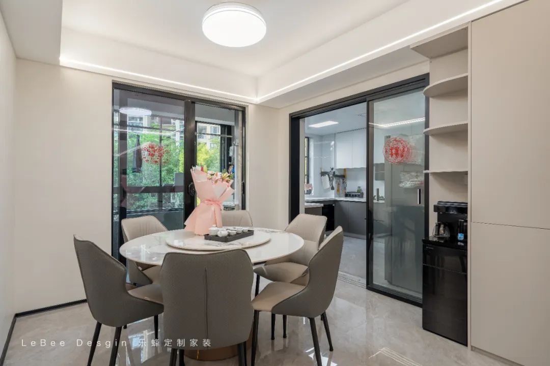 后期可在餐邊柜側(cè)邊增設(shè)折疊備餐臺,節(jié)日家宴時可擴(kuò)展操作空間。從日常早餐到節(jié)日家宴,這里不僅是味蕾的滿足地,更是三代同堂的情感交匯點(diǎn)。