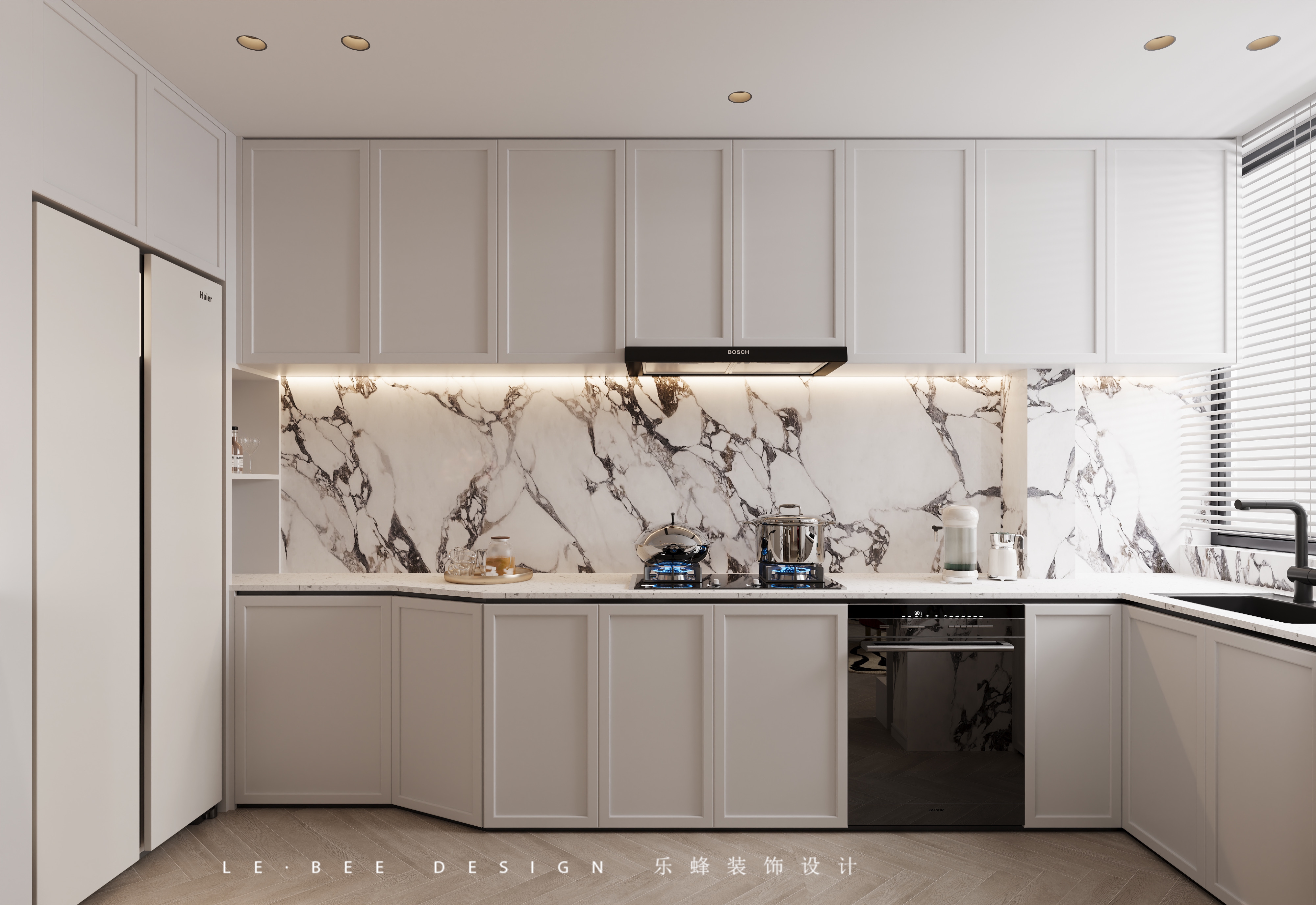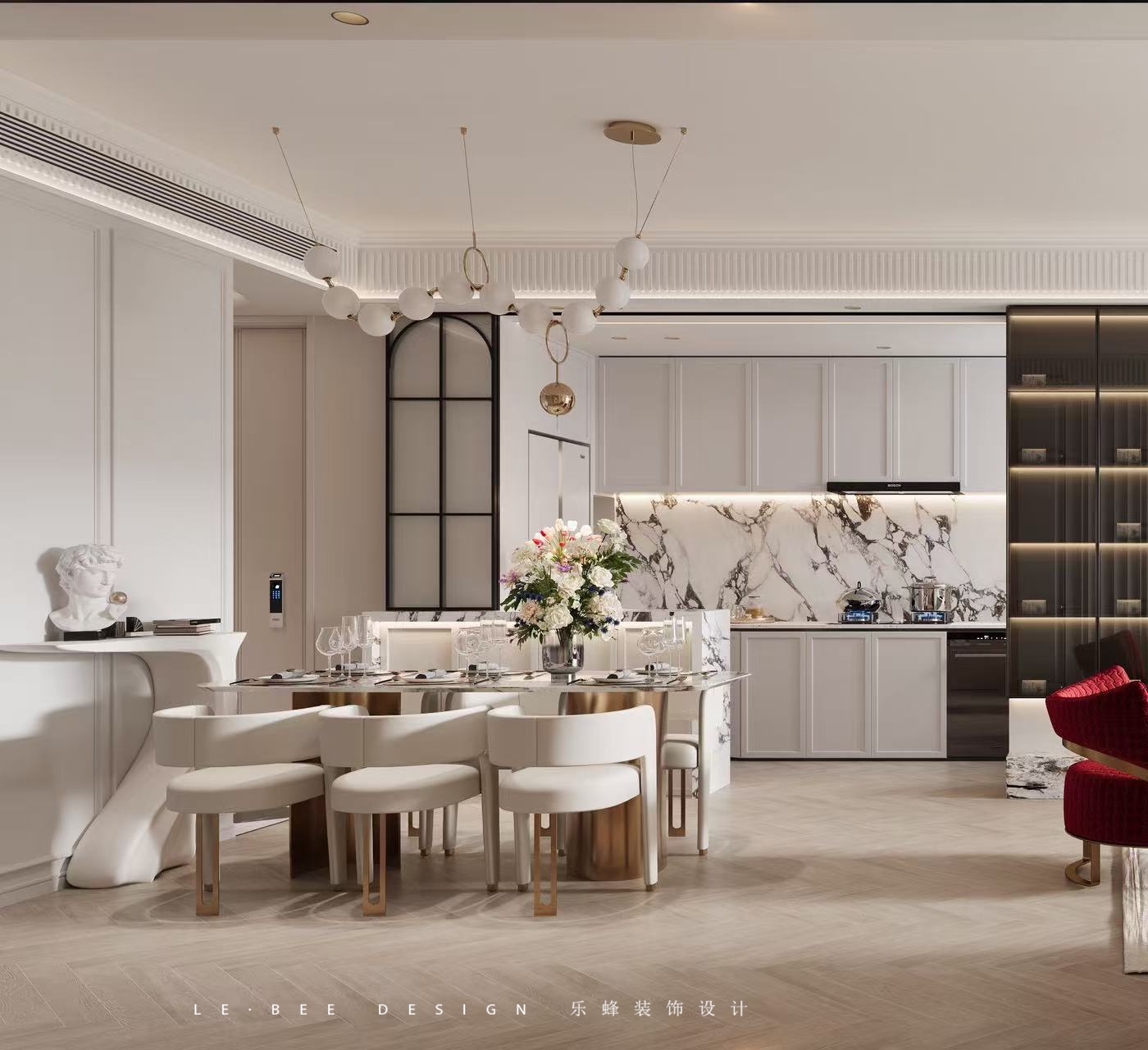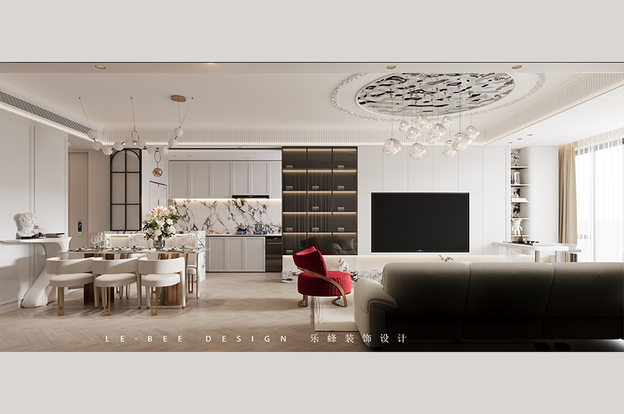 這是一套120㎡的大戶型,采用現(xiàn)代簡(jiǎn)約與輕奢風(fēng)融合,以簡(jiǎn)潔流暢線條勾勒空間輪廓,通過(guò)精致細(xì)節(jié)與高檔材質(zhì)彰顯奢華質(zhì)感 ,營(yíng)造出既時(shí)尚大氣又不失溫馨舒適的居住氛圍。 大量使用大理石,如廚房背景墻,憑借其天然紋理與光澤提升空間質(zhì)感;搭配金屬元素(如家具腳、燈具裝飾等) ,展現(xiàn)精致與時(shí)尚;還有玻璃材質(zhì)(如柜門、燈具),增加空間通透感與輕盈感。