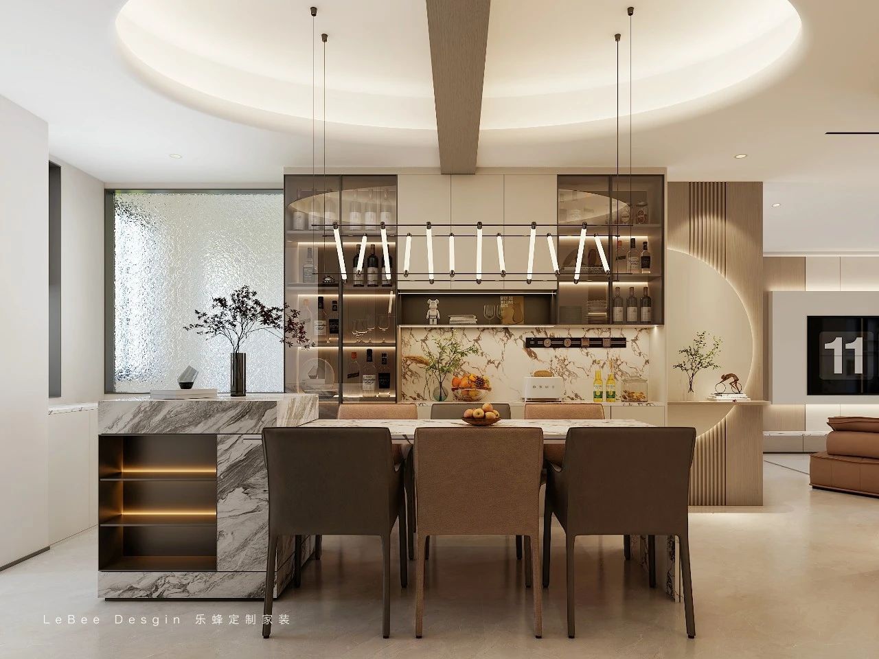 本案為140㎡四居室,設(shè)計(jì)師以暖咖色系為基調(diào),融合意式輕奢的簡約與質(zhì)感,打造出沉穩(wěn)內(nèi)斂的高級生活空間。 通過材質(zhì)碰撞、光影層次與功能優(yōu)化,詮釋舒適與美學(xué)平衡。