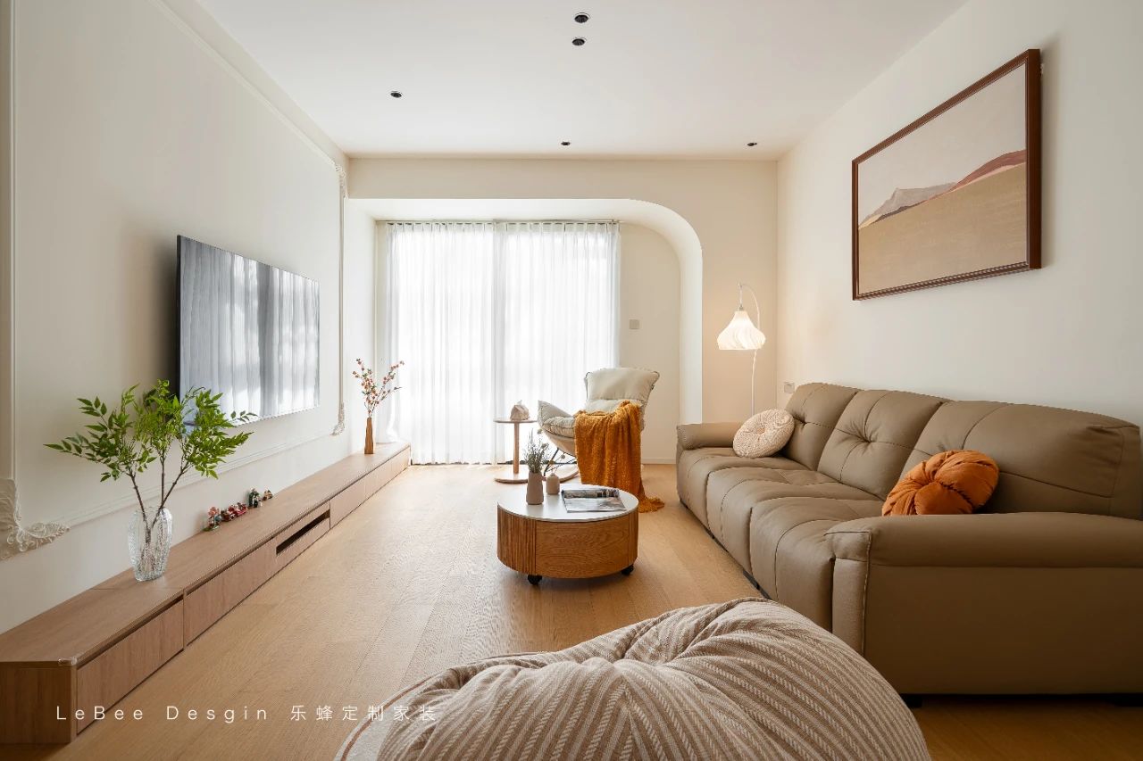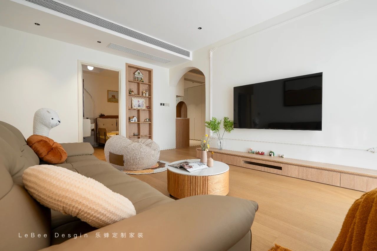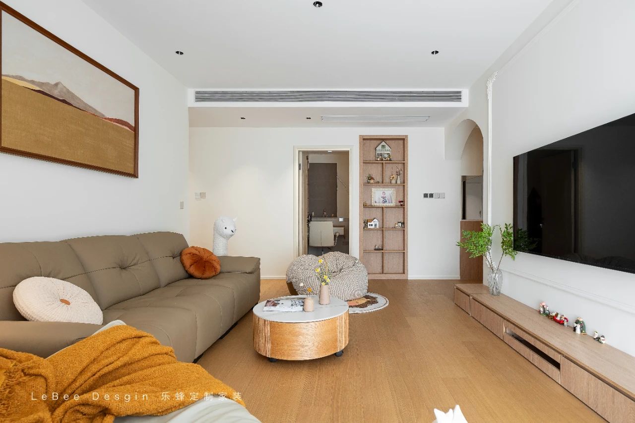 客廳以淺色系為主,搭配原木色家具,營造出輕松舒適的氛圍。
