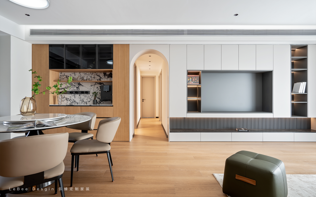 這套160平米的房子,以現(xiàn)代簡(jiǎn)約風(fēng)格的裝修基調(diào),整體空間相對(duì)寬松,再以餐廚空間一體的設(shè)計(jì),更加讓生活空間有著別樣情趣的體驗(yàn)。而空間內(nèi)充足實(shí)用的收納柜,也為這套房子帶來了一個(gè)簡(jiǎn)潔大方的儲(chǔ)物保障。