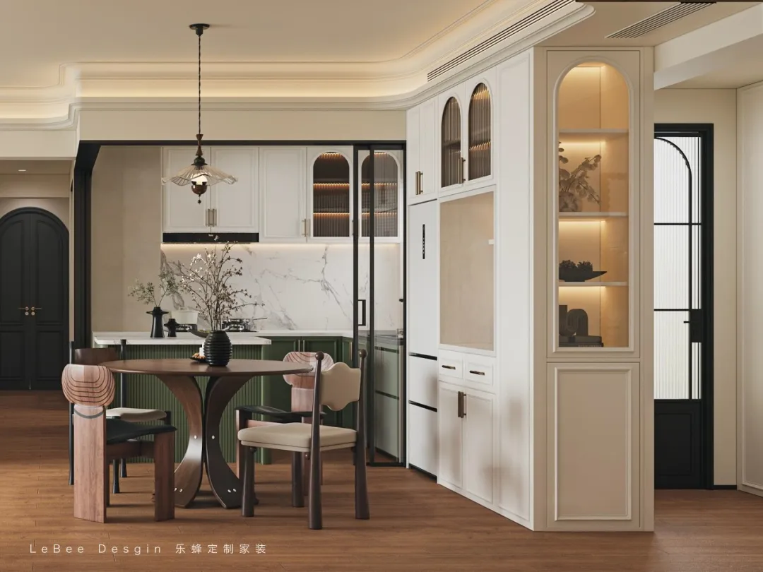 本案119㎡,位于深圳深業(yè)新岸線。告別精裝房的千篇一律,我們以法式復(fù)古為家“重塑靈魂”——不要刻意的奢華,而要慵懶的詩意。 推開門,雕花線條、魚骨拼木地板、溫潤的中古家具……每一處改造,都讓“家”的印記清晰一分。在快節(jié)奏的深圳,這個角落藏著不慌不忙的浪漫。