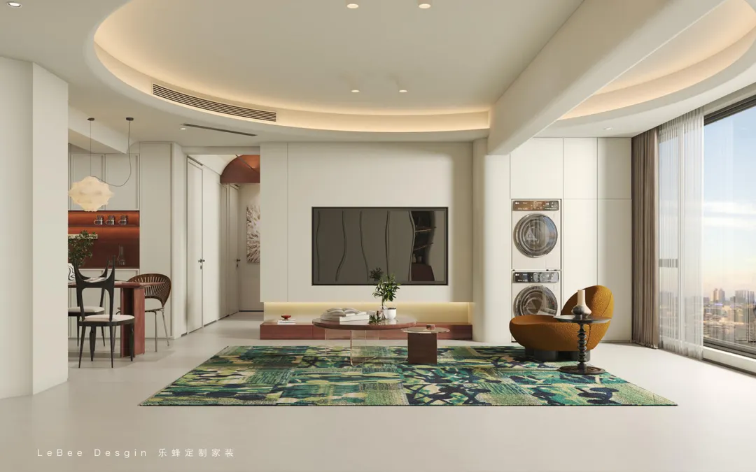 將休閑、娛樂、社交等功能在客廳區(qū)域自然融合,滿足了業(yè)主多元化的生活需求。