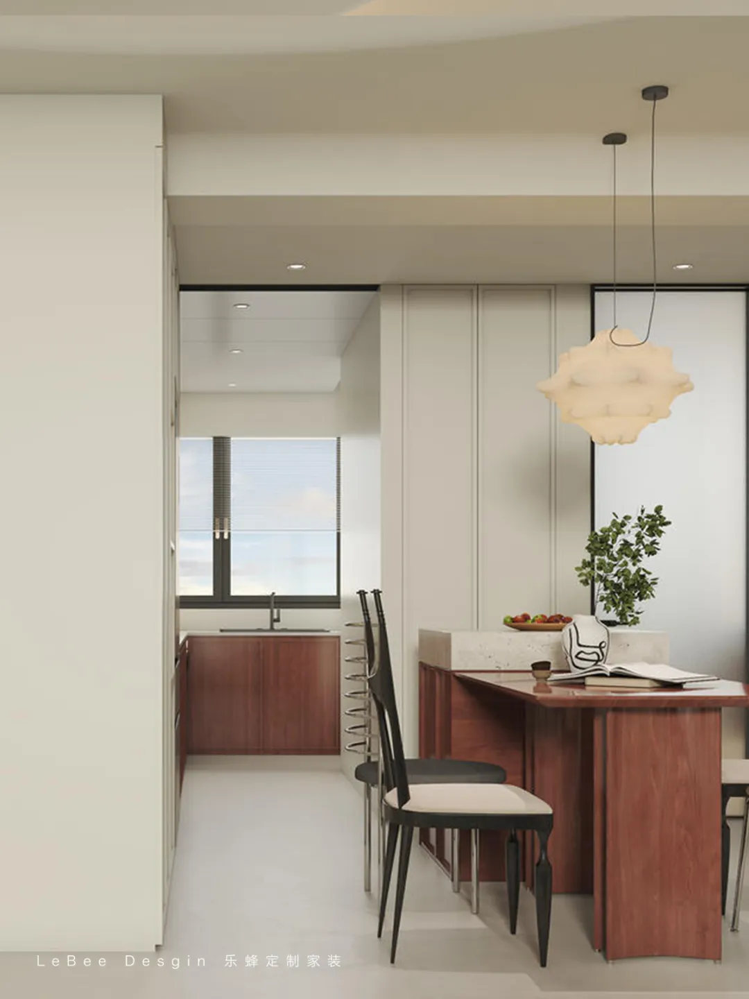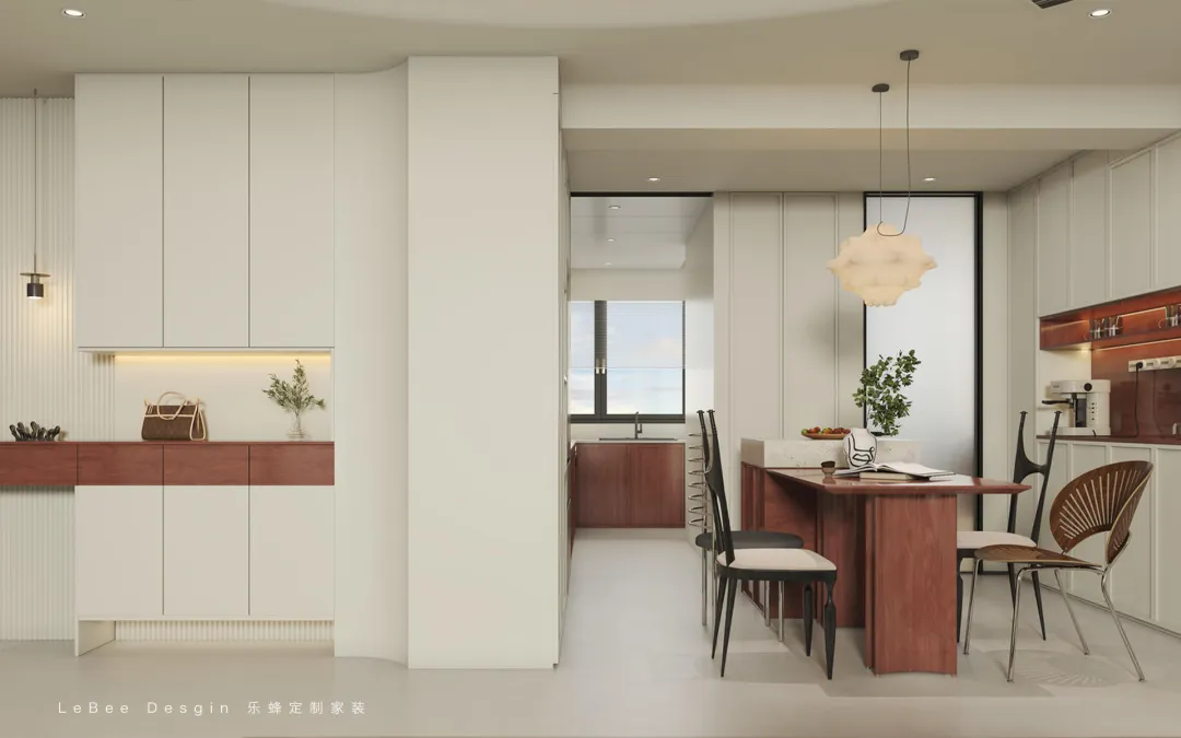 廚房與餐廳完全打通,形成 “烹飪 — 就餐 — 社交” 的流暢動(dòng)線。