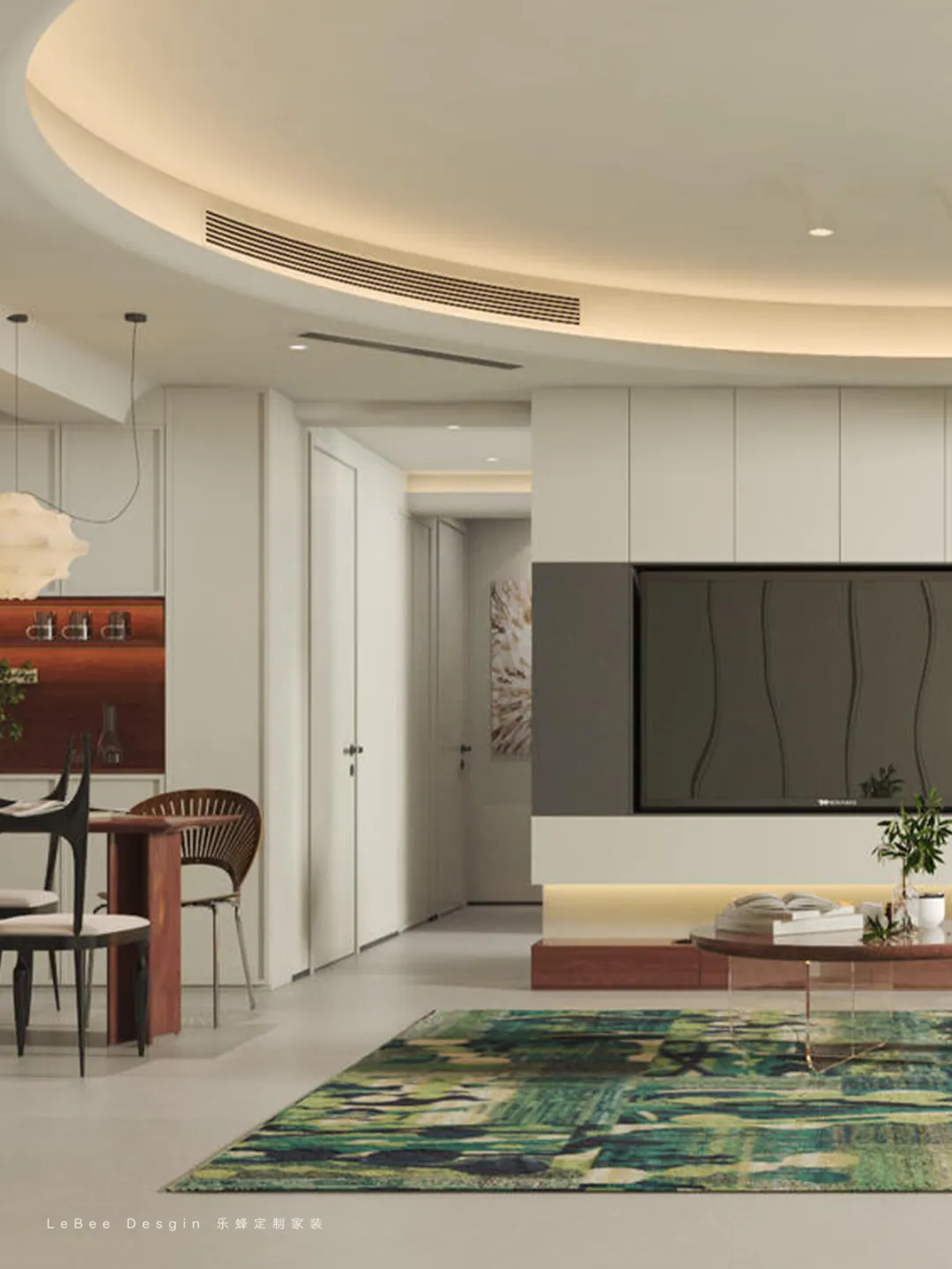 采用大面積的弧形吊頂設(shè)計(jì),打破了傳統(tǒng)直線條的刻板,為空間增添了柔美感與藝術(shù)感。