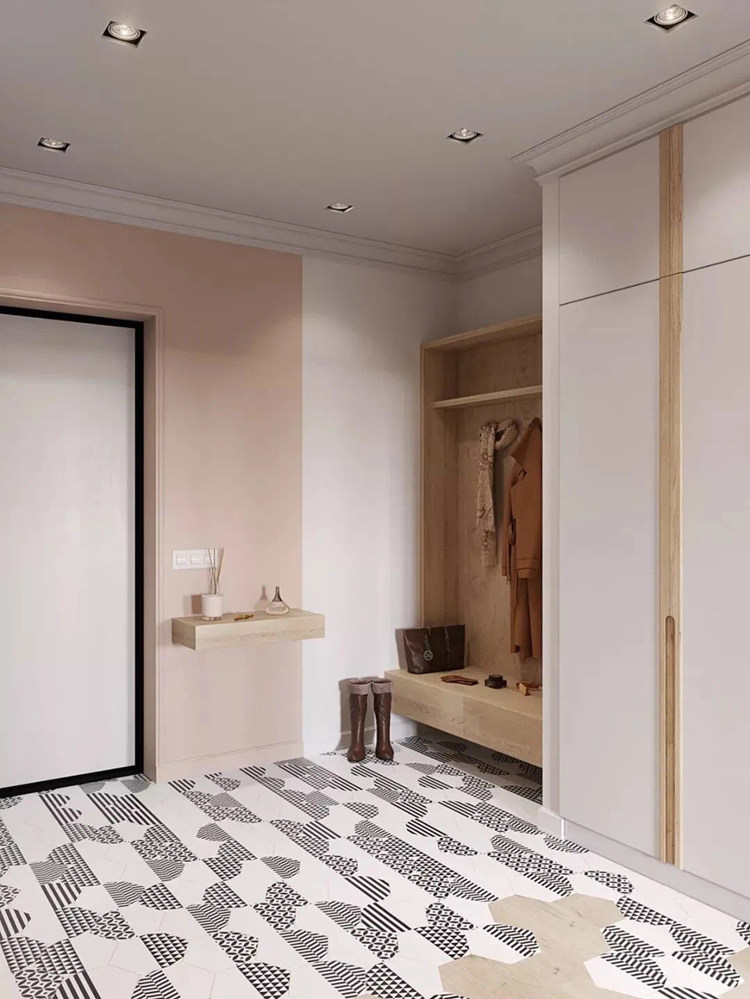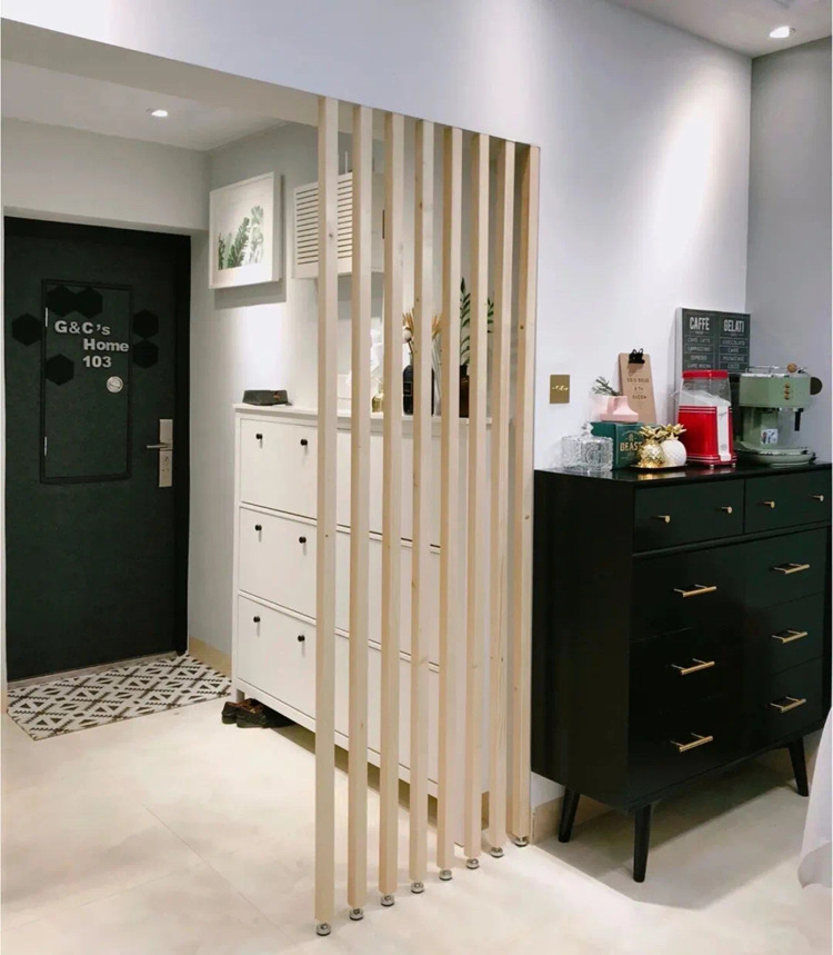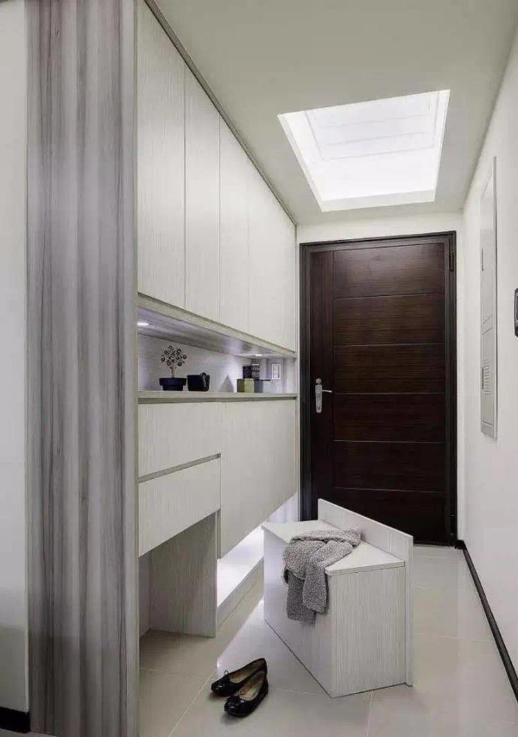 鞋柜、斗柜、鏡子三大標配齊活!大宅的可以考慮設(shè)計藝術(shù)一些的玄關(guān)。(這篇先不做重點講解~)