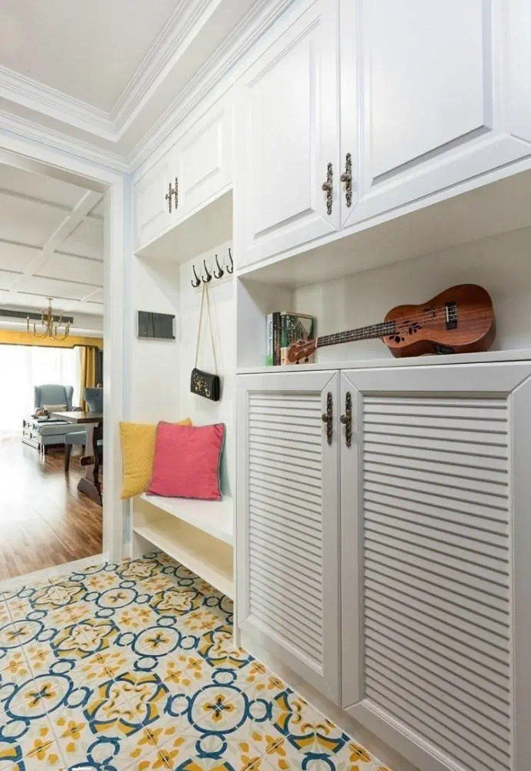 家里人口多需要大量收納,可以采用封頂式的玄關(guān)柜,切記不要做滿,做一半留一半,不然空間看上去會很擁擠,視覺不舒服。