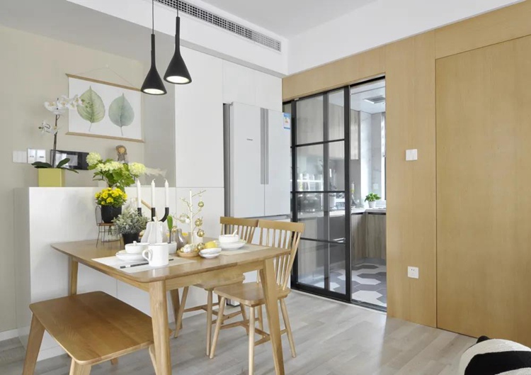 餐桌巧妙隔斷客廳與廚房的空間,美觀度與收納能力直線上升。