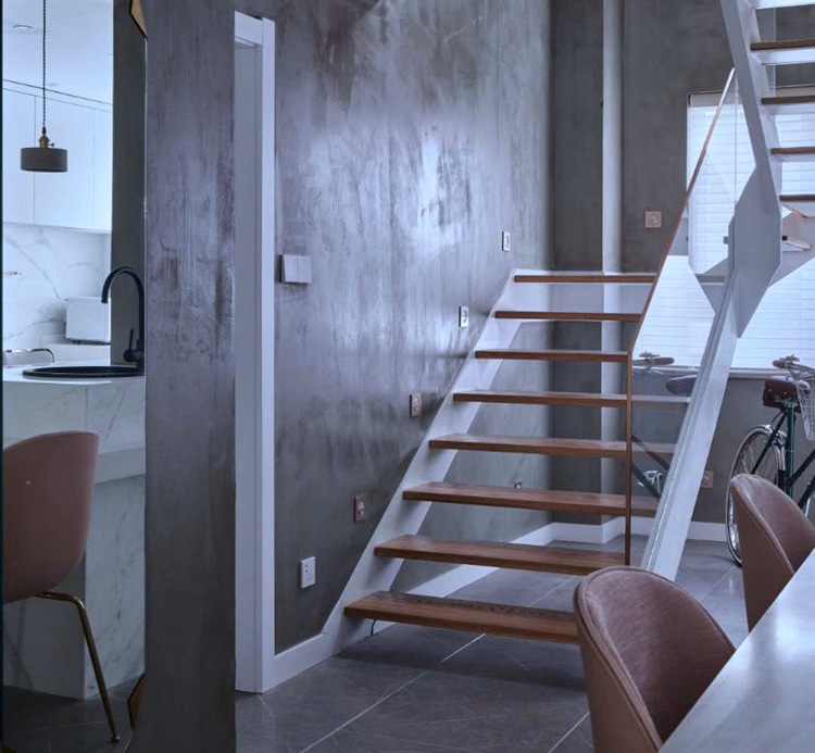樓梯為了更好的采光,用全鐵架鋪實木,玻璃是鑲嵌在鐵架中的,配上金屬加以點綴,實用又好看。